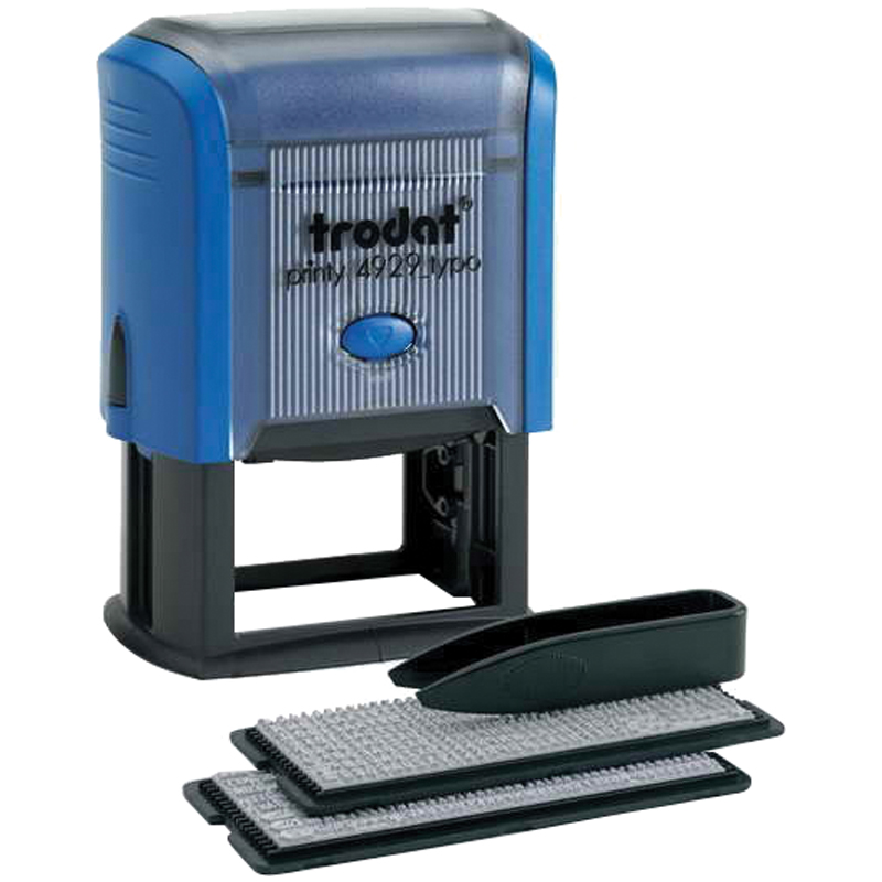 Самонаборный 6-строчный штамп. В комплект входит пинцет, 2 кассы букв, цифр и символов 6005 и 6006. Максимальное количество знаков в строке основного шрифта – 28, для выделения текста – 20. Размер поля 50х33 мм.
