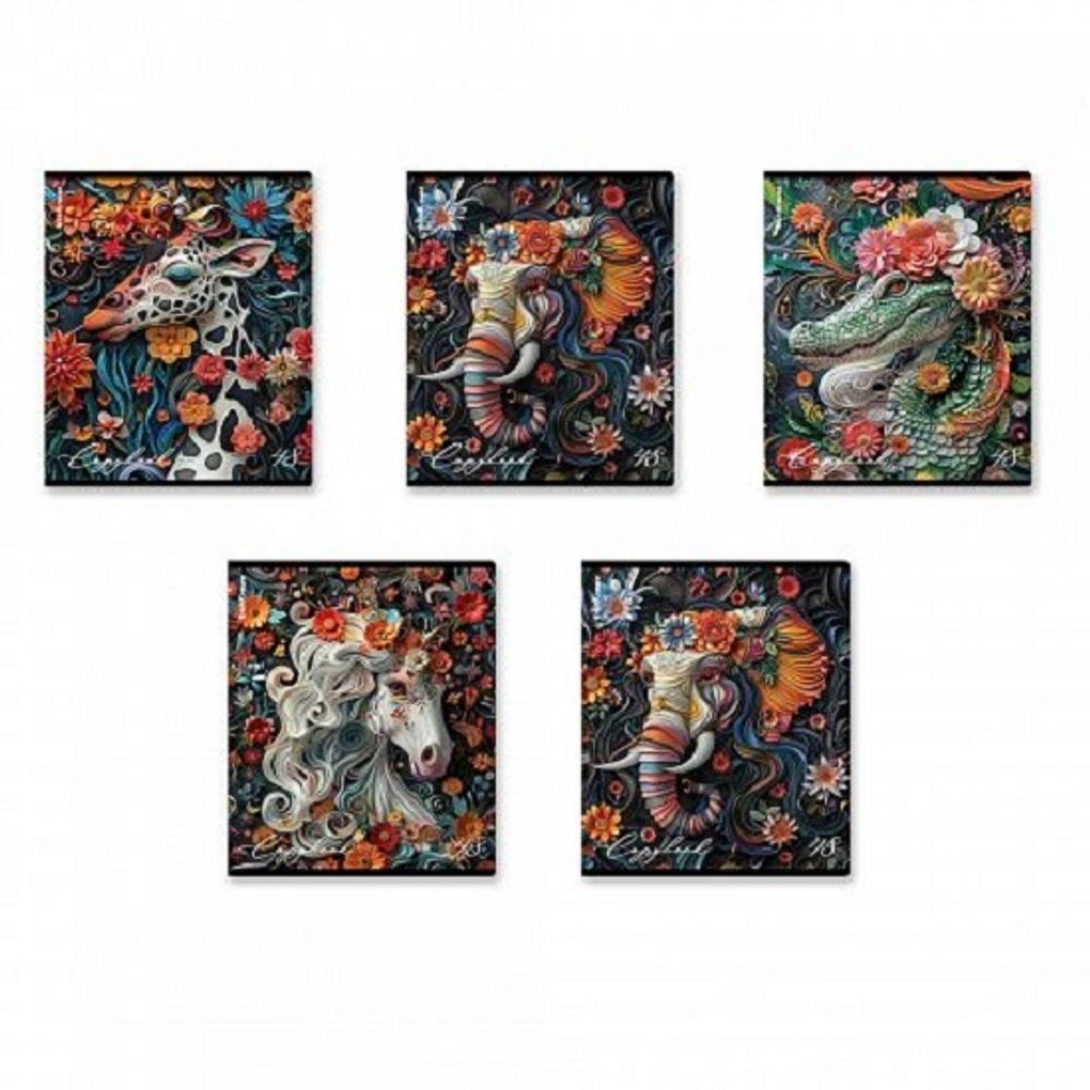 Тетрадь общая ученическая формата А5+ (170х203 мм). Обложка из высококачественного мелованного картона плотностью 190 г/м2. Отделка - выборочный УФ-лак. В блоке 48 листов в клетку с полями. Бумага офсетная плотностью 60 г/м2. Цвет линовки - синий. Скругленные уголки обложки и блока. Тип скрепления - скоба.