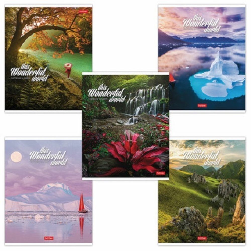 Тетрадь А5 формата содержит 96 листов. Обложка изготовлена из мелованного картона. Внутренний блок состоит из офсетной бумаги плотностью 60 г/м2, линовка в клетку, красные поля. Дополнена спецэффектом в виде тиснения. Скрепление: скоба.