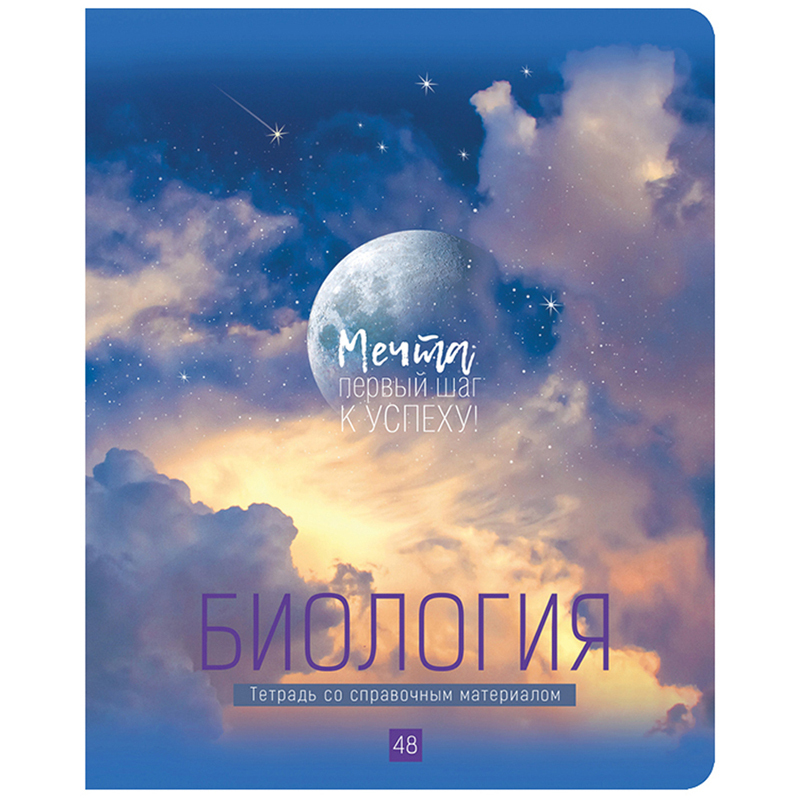 Тетрадь предметная «Биология» из серии «My Sky» со справочной информацией на форзаце и титульном листе. Формат А5. Вид крепления – скрепка. Обложка – мелованный картон с матовой ламинацией и металлизацией, скругленные углы. Внутренний блок – 48 листов, офсет 60 г/м2, клетка с полями.