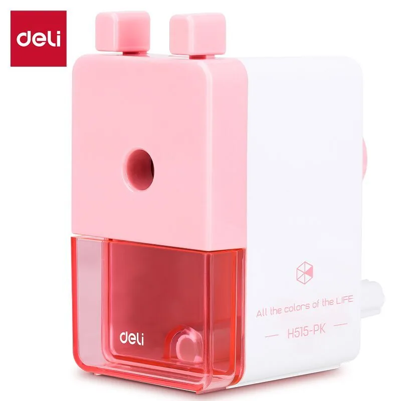 Точилка механическая Deli EH515-PK, пластиковый корпус, анти-скользящие вставки, бело-розовая, пластиковый бокс