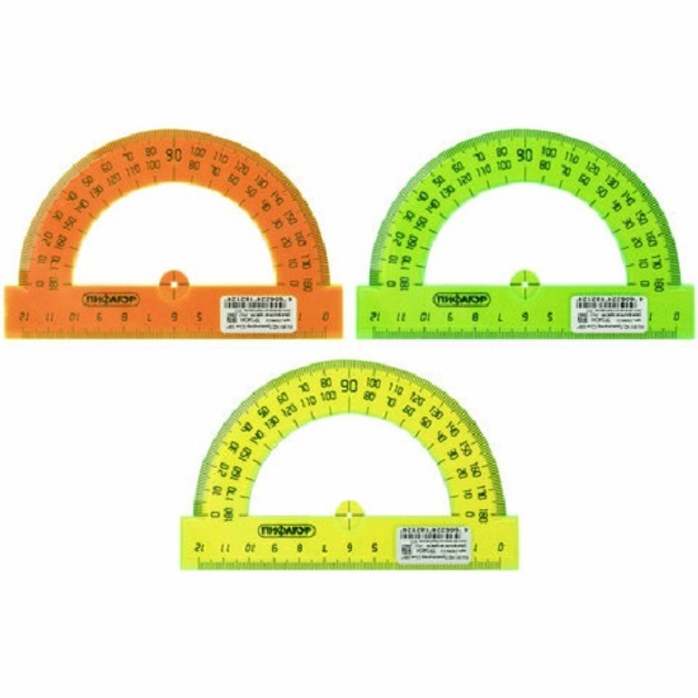 Изготовлен из прочного прозрачного пластика толщиной 2 мм. Длина разметки линейки составляет 12 см, шкала транспортира - 180°. Отверстие для карандаша позволяет точно находить центр и вычерчивать окружность 360°. Обладает четкой разметкой, нанесенной методом термопечати. Размер - 6х13 см. Цвет - ассорти. Поставляется без упаковки.
