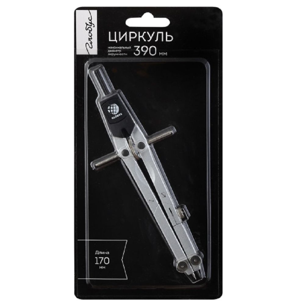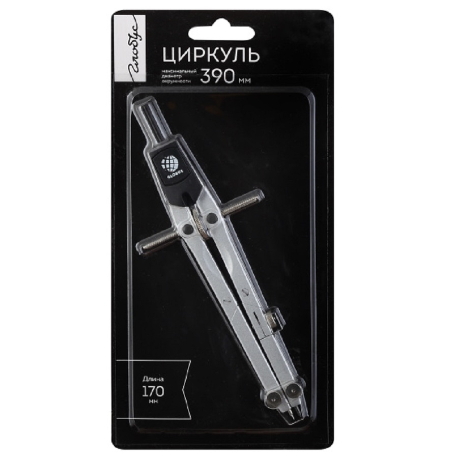 Изделие из стали. Он оснащен удобным фиксирующим кольцом, что позволяет точно фиксировать необходимый радиус. Длина – 170 мм. Максимальный диаметр окружности – 390 мм. Упаковка – блистер с европодвесом.